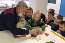 Сегодня в рамках работы по ранней профориентации дети подготовительной к школе группы № 7 посетили политехнический колледж имени Е.Н.Королева