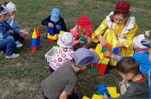 А у нас сегодня веселый праздник! Ребята играли в различные народные игры, сореновались в строительстве зданий родного города, отвечали на вопросы о родном крае, повеселились от души!