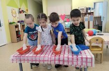 Дети из средней группы №9 познакомились с качествами и свойствами резины.