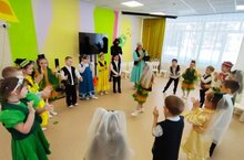 Дети водили хороводы, играли в разные игры, получили в подарок проросшую пшеницу. И конечно же, угощались блинами, сладким чаем и сладкими призами.