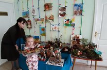 В нашем детском саду была организованна выставка поделок из природного материала "Дары Осени"созданных совместно родителями и детьми.Поражает многообразие работ,творческая фантазия авторов. Воспитатели групп провели экскурсии к экспонатам выставки .Детям очень понравились поделки,сделанные из обычных овощей, фруктов, осенних листьев.