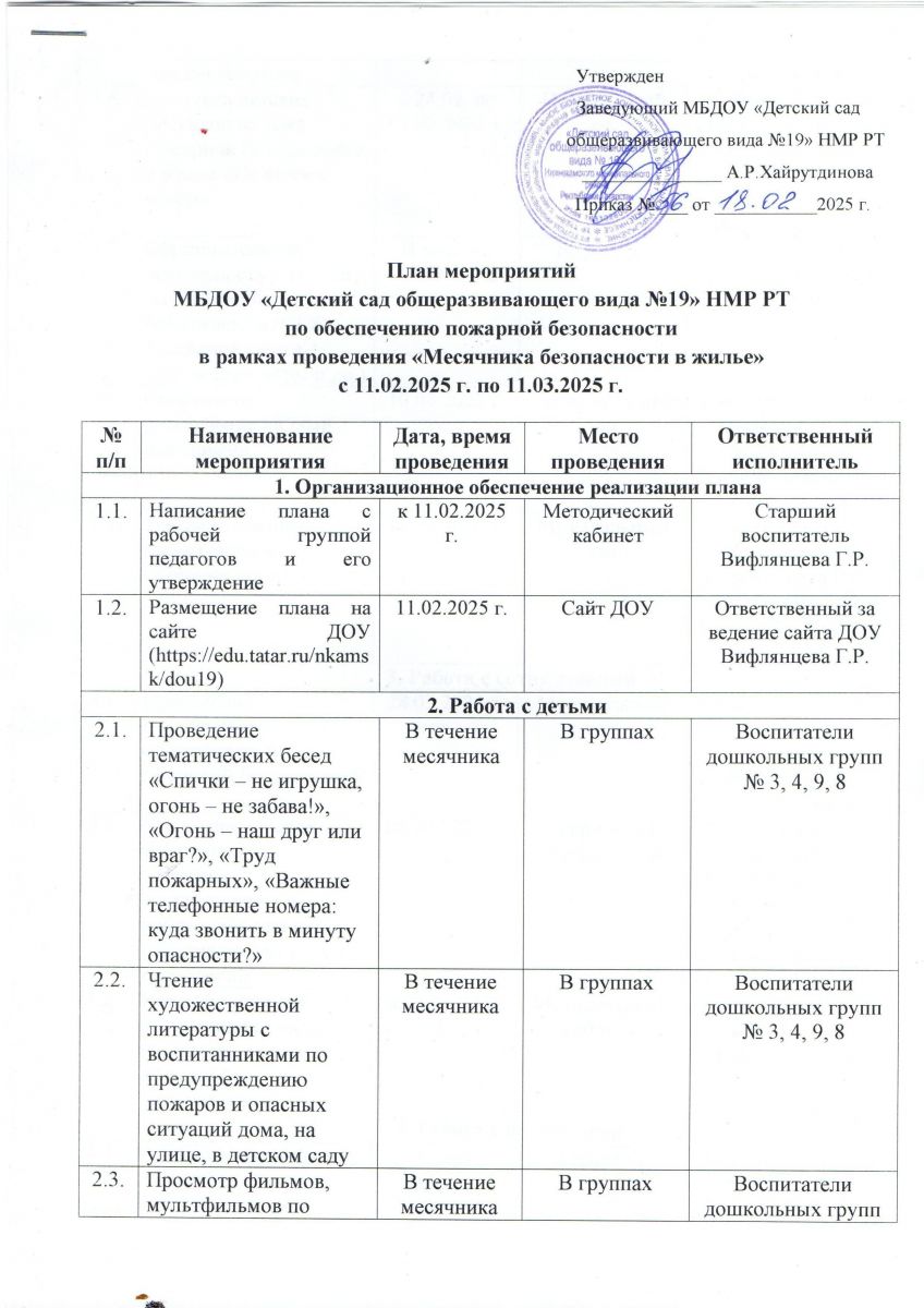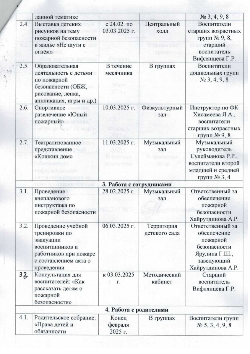 План мероприятий по обеспечению пожарной безопасности в рамках проведения "Месячника безопасности в жилье" с 11.02.2025 г. по 11.03.2025 г.