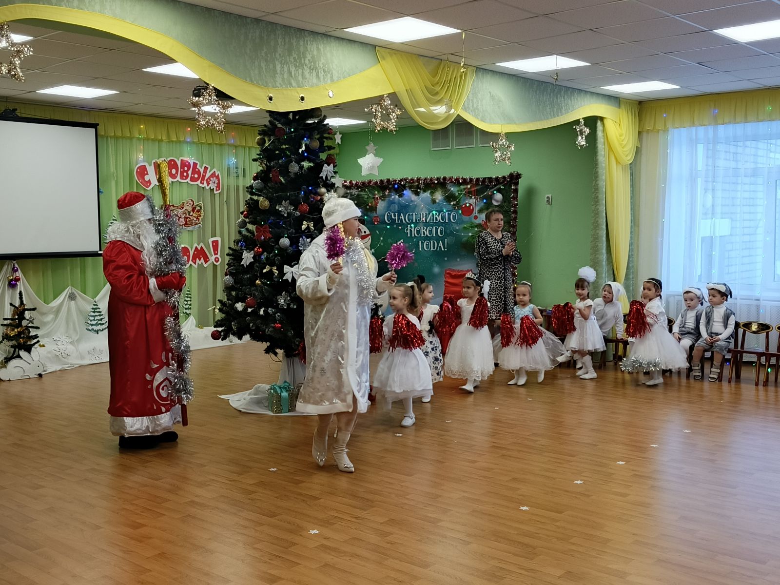 Непосредственность ребятишек, их активность и задор на утреннике - так радует и восхищает! А Снегурочка стала настоящей волшебницей, превратив игрушечного Деда Мороза в настоящего, который вместе с ней веселил детей и подарил гостинца в конце праздника.