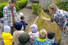Ребята ранней группы №4 "Подсолнушки" на прогулки посетили злаковое поле и огород