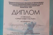 Первенство МО "пгт Камские Поляны" НМР РТ по лыжным гонкам в рамках Всероссийской акции "Лыжня России- 2023" Нуруллина Виталина- Диплом в номинации "САМЫЙ ЮНЫЙ УЧАСТНИК" 11.02.2023