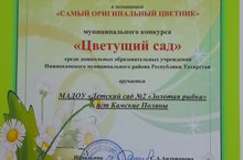 Муниципальный конкурс среди ДОУ Нижнекамского муниципального района района РТ "Цветущий сад". Наш коллектив награжден Дипломом в номинации "Самый оригинальный цветник" 30.09.2022