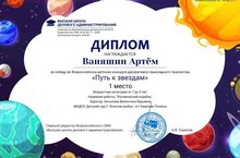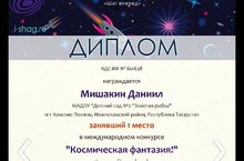 Международный конкурс «Космическая фантазия!»: - Жукова Екатерина и Сергеева Т.А.– Диплом за 1 место в номинации «Детское творчество»; - Гребнева Ангелина и Сергеева Т.А.– Диплом за 1 место в номинации «Детское творчество»; - Царева Валерия и Сергеева Т.А.– Диплом за 1 место в номинации «Детское творчество»; - Маслова Елизавета и Гребнева И.Г. – Диплом за 1 место в номинации «Детское творчество»; - Мишакин Даниил и Гребнева И.Г. – Диплом за 1 место в номинации «Детское творчество»; - Сычева Злата и Елистратова Т.А.– Диплом за 1 место в номинации «Детское творчество»; - Сергеева Т.А., Гребнева И.Г., Елистратова Т.А. – Диплом за подготовку победителей конкурса в номинации «Детское творчество». 18.04.2021