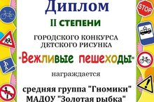 Городской конкурс детского рисунка «Вежливые пешеходы». Воспитанники средней группы №7 «Гномики» и воспитатель Алешина А.В. награждены Дипломом II степени. Поздравляем!!! 26.10.2020