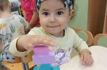 Воспитанники первой младшей группы №4 "Подсолнушки" сегодня на занятие по конструированию строили высокую башню.
