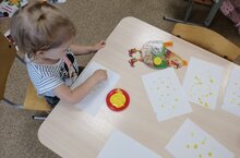 В гости к ребятами первой младшей группы №4 "Подсолнушки" пришел Петушок и попросил немного зёрен. Детки пальчиками старались изобразить зёрнышки на листочке и угостить гостя.