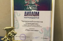 I Муниципальный театральный фестиваль "ТЕАТР БЕЗ ГРАНИЦ". Творческий коллектив МАДОУ №2 "Семицветик" награжден Дипломом в номинации "Перспектива". Поздравляем!!! 03.11.2019