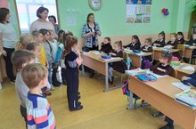 Преемственность ДО и НОО. Экскурсия в МБОУ "Камскополянская средняя общеобразовательная школа №1": знакомство и посещение классной комнаты, кабинета директора, школьной библиотеки, спортивного зала, плавательного бассейна, столовой. Цель: ознакомление с условиями школьного обучения 08.10.2019