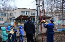 В каком восторге были наши дети, когда с гордостью приносили в группу «птичьи домики», сделанные заботливыми руками родителей. Все скворечники были размещены папами и дедушками ребят на территории детского сада.