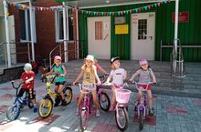 Сегодня наши дошколята приехали в детский сад на самокатах и велосипедах, тем самым проявили свое участие в дне велосипедных действий.