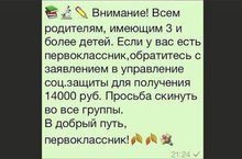 Материальная помощь в размере 14 000 руб. первоклассникам из семей, имеющих 3 и более детей, НЕ ПРОИЗВОДИТСЯ!!!