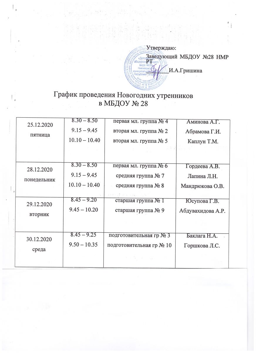- График новогодних утренников 18.12.2020