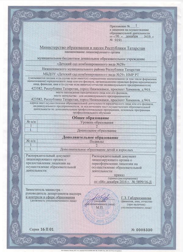 Лицензия на осуществление образовательной деятельности  Приложение к лицензии на образовательную деятельность