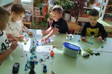 Дети старших групп построили из лего конструктора город и закрепили правила поведения в общественных местах