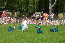 А главным сюрпризом концерта стало выступление нижнекамских дошкольников. На плац прибыл импровизированный поезд, из которого выбежали солдаты – их встречали матери и жёны. Воспитанники нашего детского сада из подготовительных групп №6,7 и старших групп №4,5 приняли участие в торжественном мероприятии.