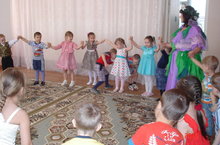 С самого утра дети в шуточных костюмах и разукрашенными лицами играли в разные веселые и подвижные игры. Настрение было отличное, веселое и все зарядились энергией на весь день.