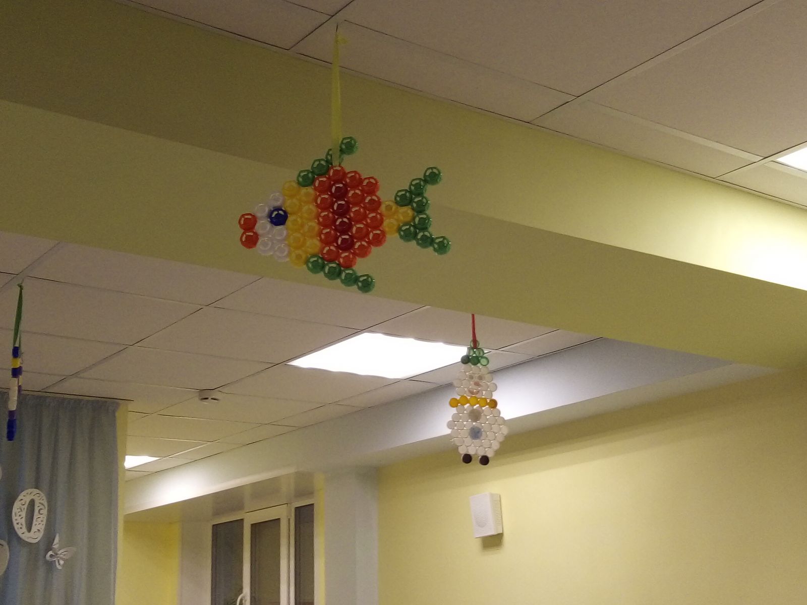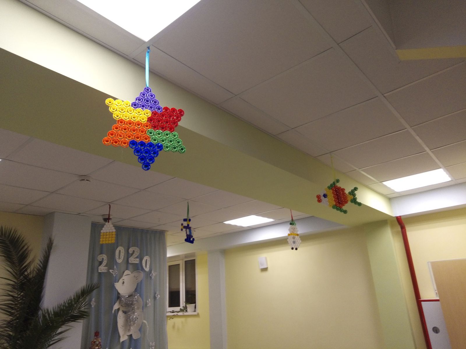 Опубликовано: 20.12.2019В канун Нового года родители, воспитанники и педагоги изготовили объемные и плоские игрушки, панно из пластиковых крышек. Холл детского сада украсили вертолеты, звезды, снеговики, елочки, рыбки, елочные игрушки, домики...