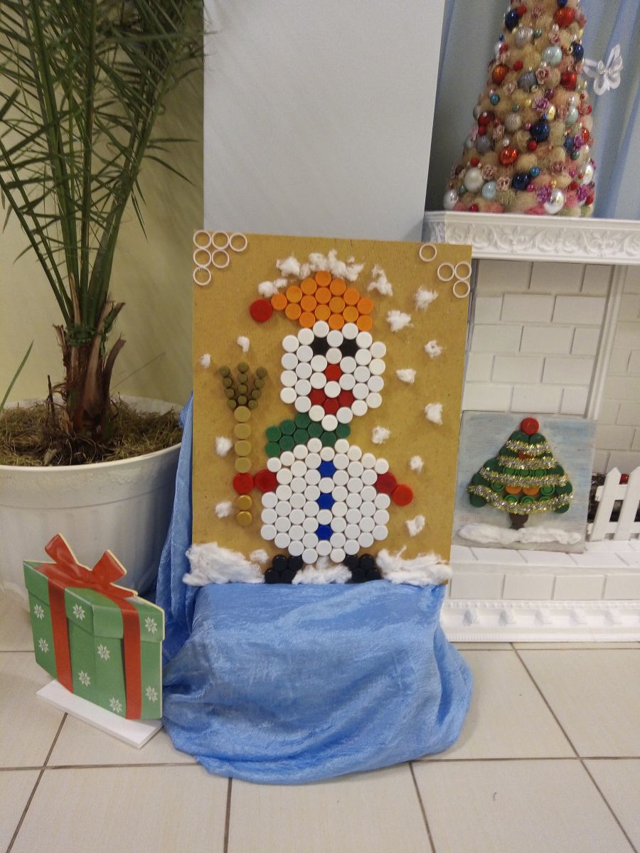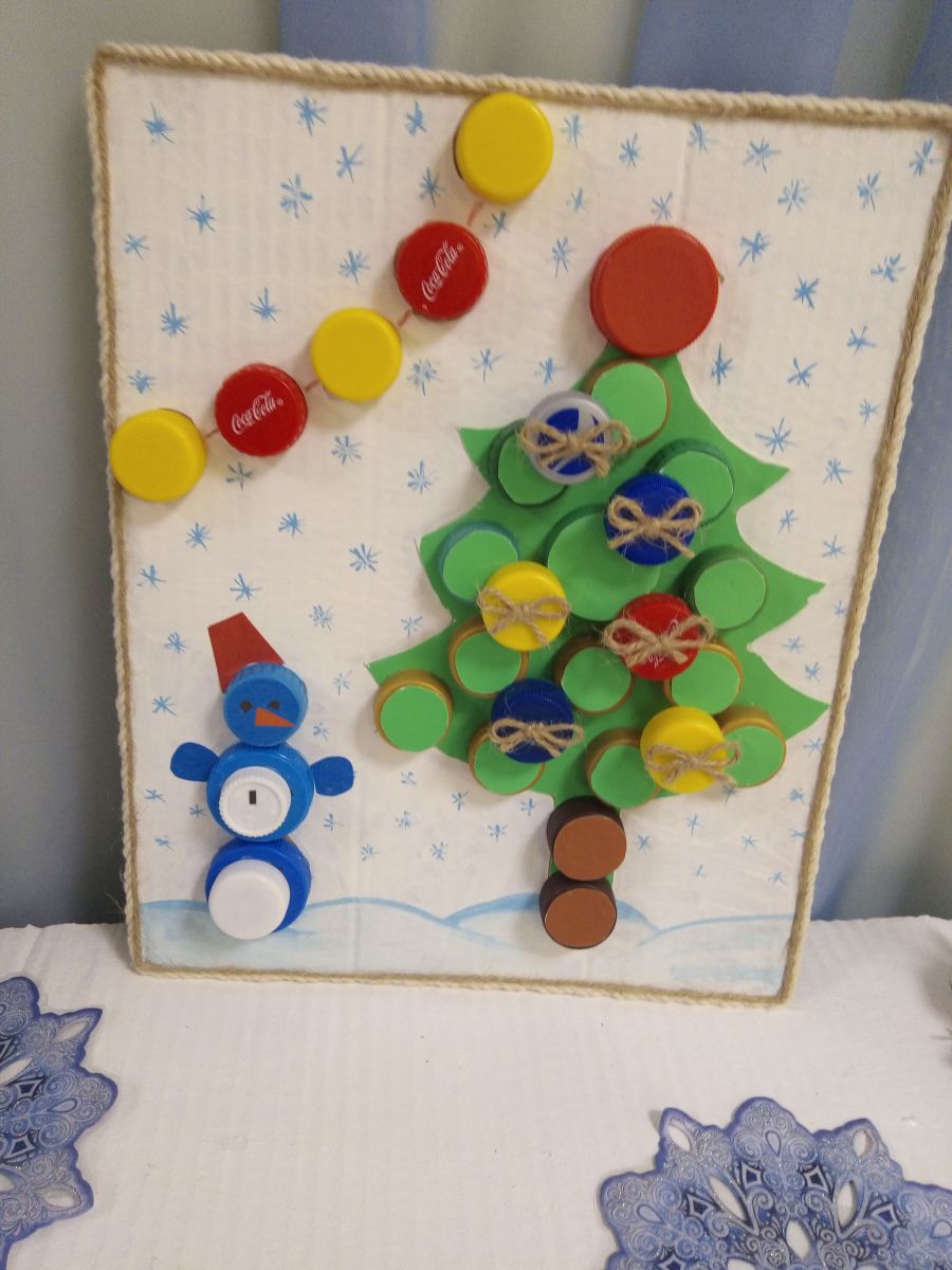 Новогодние поделки из пластиковых крышек