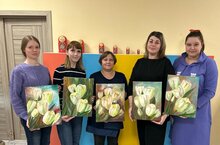 В первый день весны коллектив детского сада "Гнездышко" посетил мастер-класс по рисованию картины в Семейном центре "Матрёшка". Спасибо за теплый прием и приятную атмосферу сотрудникам семейного центра. Мы в свою очередь получили массу приятных впечетлений и унесли с собой красивые картины, которые радовали не только нас, а также детей, родителей и сотрудников на выставке в детском саду.