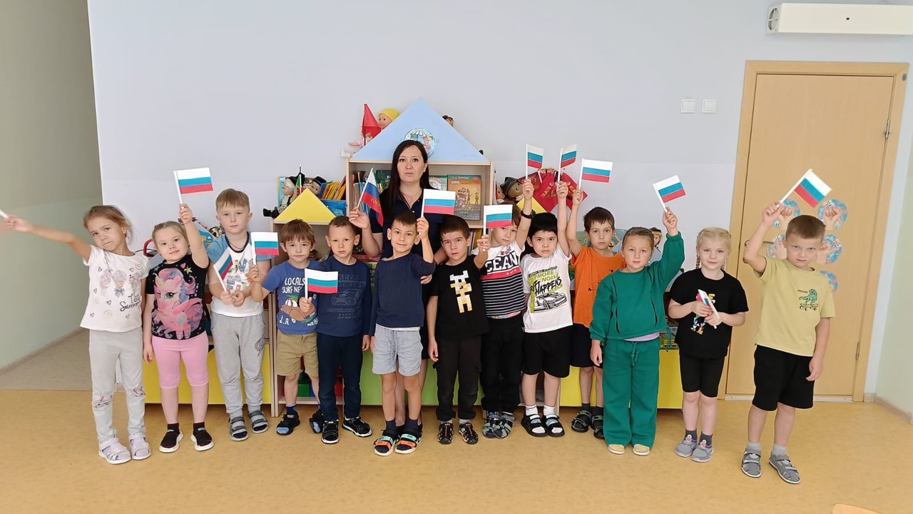 Опубликовано: 22.08.2024Ежегодно 22 августа в России отмечается День Государственного флага Российской Федерации. Приобщение детей к государственной символике РФ – одна из приоритетных задач в патриотическом воспитании дошкольников. Патриотические чувства формируются с рождения ребёнка, в процессе всей его жизни. Это чувства любви к семье, к детскому саду, родному городу, родной природе, соотечественникам, осознание себя как гражданина своей страны, уважительно относящегося к символике – флагу, гимну, гербу. Задача педагогов состоит в том, чтобы помочь детям в полной мере понять, осмыслить символы, их происхождение, значение, образы, функции. И как человек не может жить без имени, фамилии и отчества, так и его Родина не может существовать без флага, герба и гимна. В рамках празднования Дня Государственного флага РФ в нашем детском саду прошли мероприятия, направленные на знакомство детей с государственными символами России.