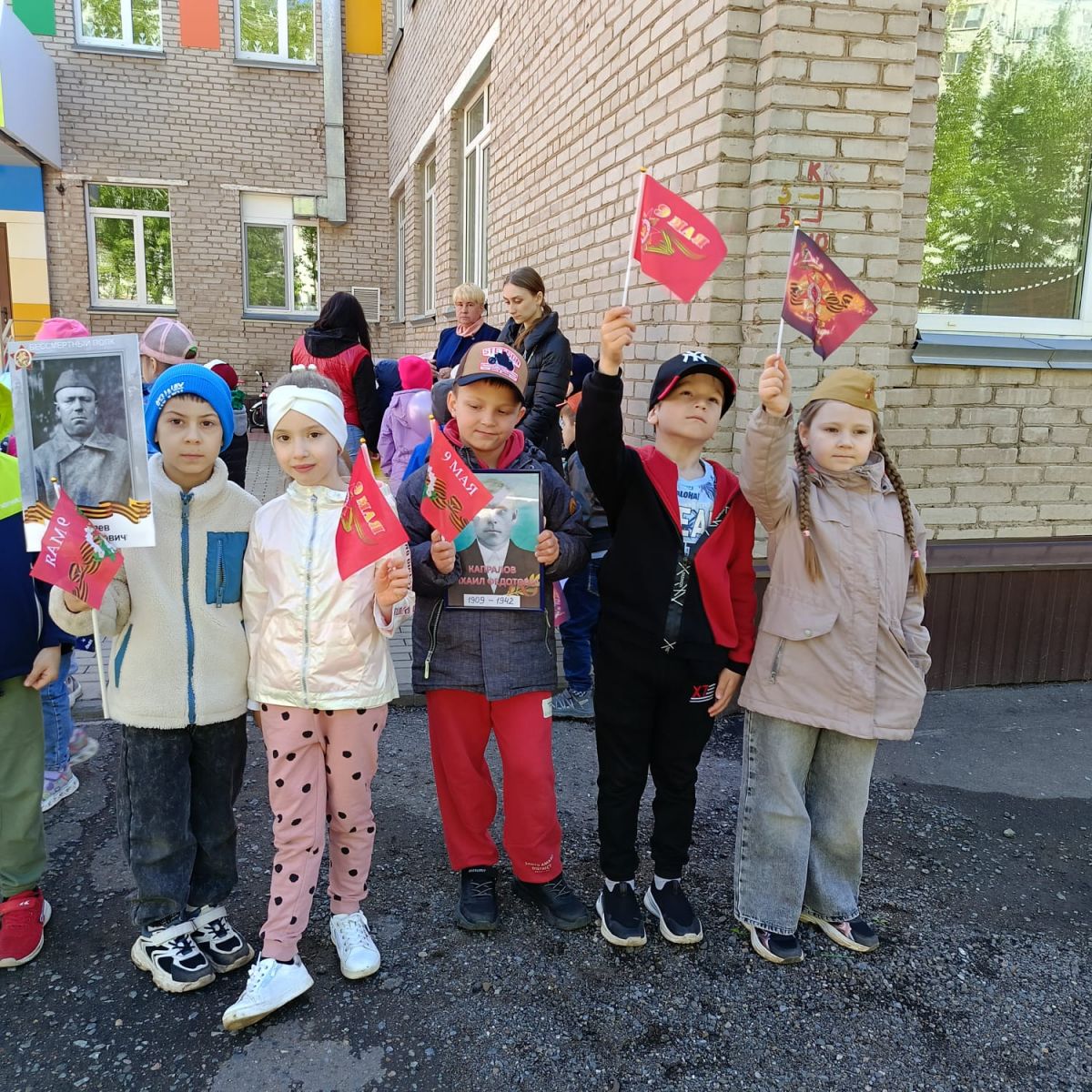 Опубликовано: 07.05.20257 мая воспитанники групп 7 и 1 вместе с воспитателями Камалеевой Г.Р. и Лапиной С.Б. участвовали в акции "Бессмертный полк" на базе детского сада № 29. Дети читали стихи, пели песни о войне и ее героях. Участники мероприятия почтили память павших героев минутой молчания и прошли «Бессмертным полком» с портретами ветеранов ВОВ по территории учреждения, а также детей угостили солдатской кашей.