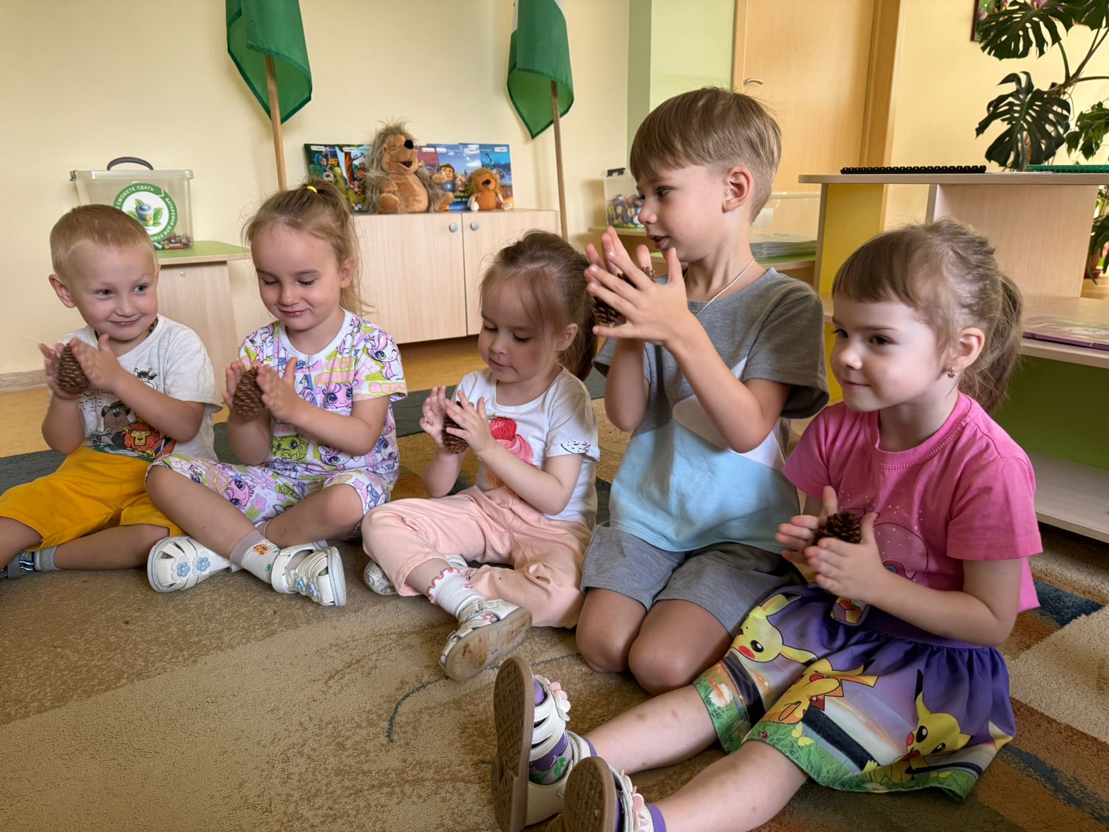 Опубликовано: 03.10.2025Осень самое красивое и сказочное время года. Воспитатель Буланова Л.Р. вместе с детьми разновозрастной группой № 5 посетила экологический кабинет и провела тематическую беседу «Осень в лесу». Дети рассматривали дары осеннего леса: желуди, грибы, шишки, листочки, животных. Закрепили знания и узнали много нового. С помощью шишек сделали массаж рук.