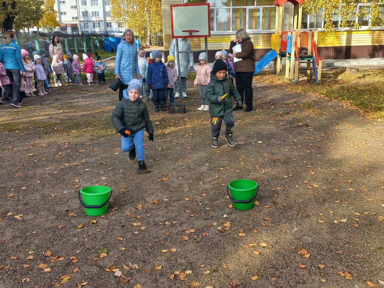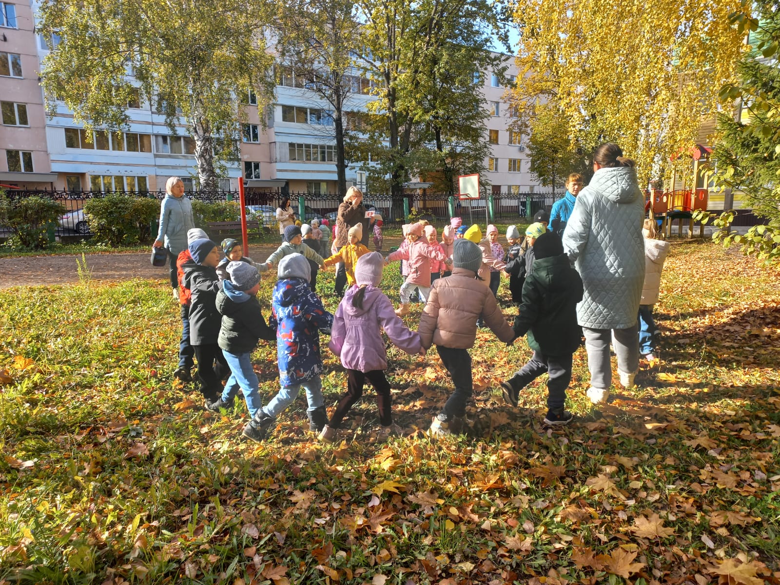 Квест начался с веселой музыки, создавшей праздничное настроение. Дети дружно вышли на улицу и отправились в увлекательное путешествие на поезде по осенним станциям. Ребята водили хороводы, пели песни, играли в подвижные игры и танцевали.