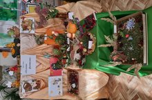 Осень скверы украшает, разноцветною листвойОсень кормит урожаем птиц, зверей и нас с тобой.И в садах, и в огороде, и в лесу, и у воды,Приготовила природа всевозможные дары! -