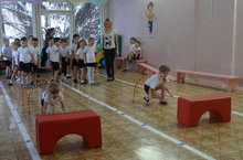 Воспитатели подготовительной группы №8 провели веселое спортивное развлечение с приглашением родителей "Веселые старты".