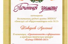 26 декабря воспитанников группы №6 Гарипову Лилиану и Кузягина Семёна за участие в Новогоднем шахматно турнире наградили Дипломами, подарками и призами