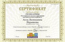 Музыкальный руководитель детского сада Пермякова Алла Леонидовна приняла участие в работе вебинара "Роль творческого подхода в коррекционной деятельности детского специалиста"