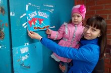 Акция ко Дню Великой Победы «Победа в сердце каждого!»(развешивание поздравительных плакатов в микрорайоне ) 06.05.2016