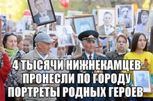 Торжественное шествие горожан с портретами своих родственников-героев стало настоящим событием для Нижнекамска. В составе "бессмертного полка" от площади Лемаева до монумента Победы прошагали около четырёх тысяч человек. Как раз столько, кстати, не вернулись на нижнекамскую землю с войны. В память о погибших была объявлена минута молчания. После этого нижнекамцы возложили цветы к Вечному огню. Студенты медицинского колледжа в форме военных лет раздали участникам бессмертного полка 2500 георгиевских ленточек.