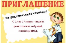 С 23 по 27 марта – неделя родительских собраний с показом Непосредственной образовательной деятельности.