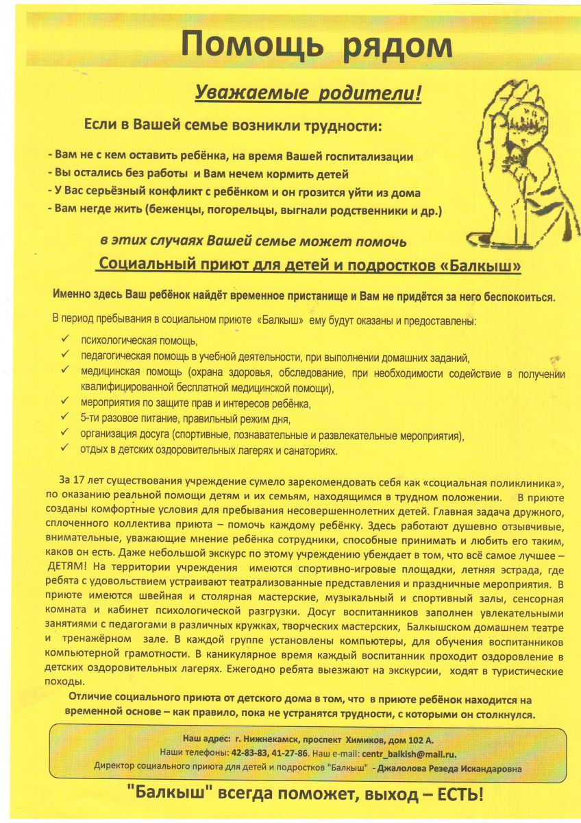 Информация о социальном приюте детей и подростков " БАЛКЫШ"