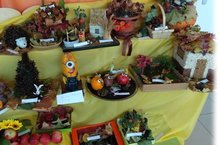 В преддверии праздничных мероприятий в детском саду организовали выставку - конкурс "Осенняя фантазия". Совместный труд детей и их родителей из природных материалов, овощей и фруктов покорил разнообразием творчества, интересными идеями.
