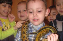 Дети дошкольных групп посетили контактный зоопарк, где были крокодилы, вараны, удавы, игуаны, лягушки и другие экзотческие животные.