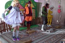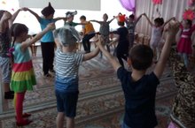 Сегодня международный день театра и дети старшей группы играли сказку "Колобок" на музыкальном занятии.