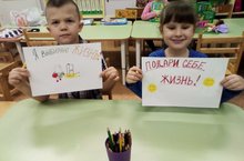 "Подари себе жизнь!" под таким девизом проходят беседы с детьми старшего возраста по профилактике по наркотизации и курению. Свои впечатления воспитанники рисуют на бумаге.