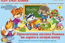 Театр кукол «Алина» г. Альметьевск приглашает всех ребят на музыкальную сказку с большими куклами «Приключения лисёнка Рыжика по дороге в лесную школу» из серии «Уроки осторожности –основы безопасности для детей».