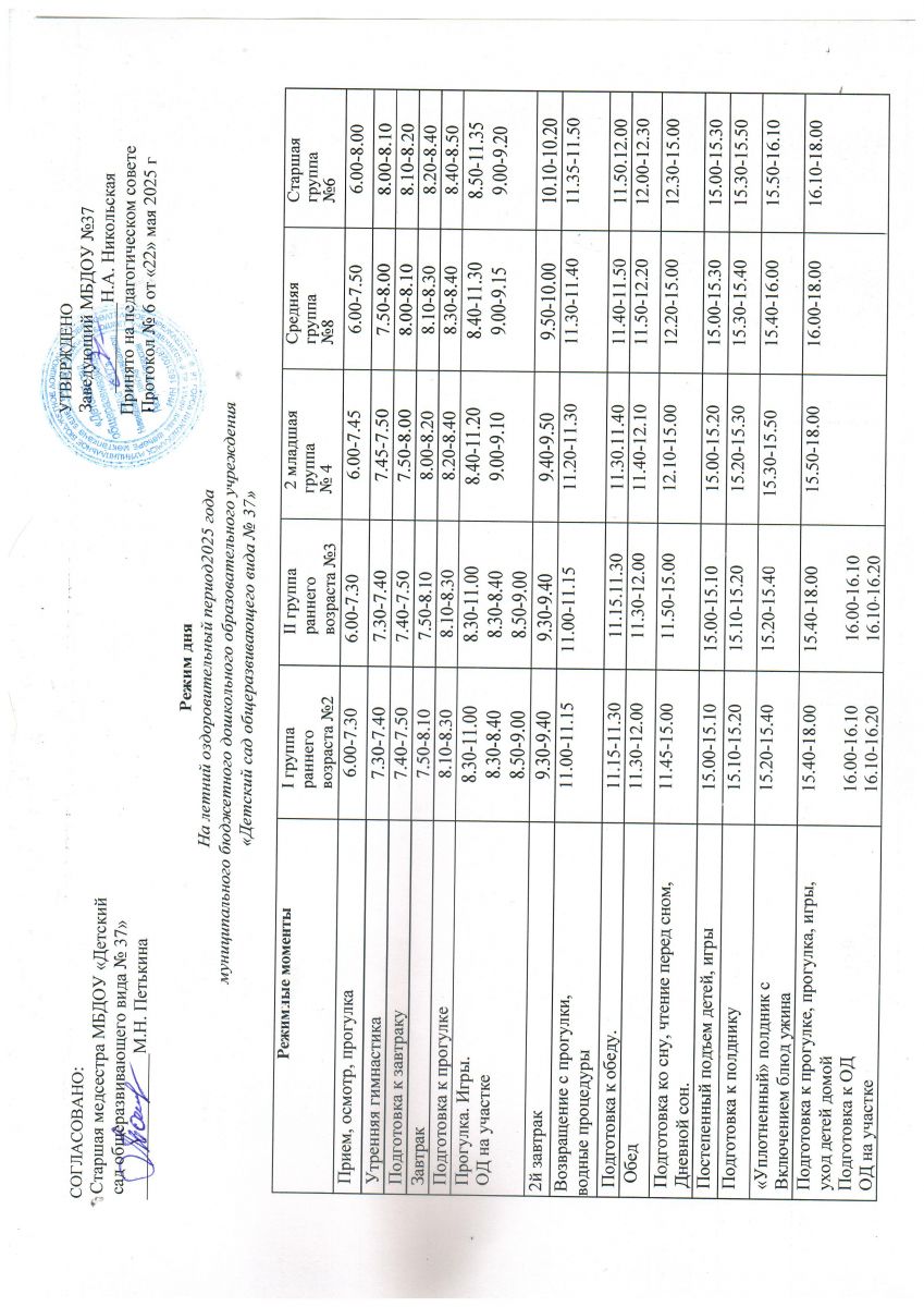 - Режим дня на летний оздоровительный период 2024-2025г.