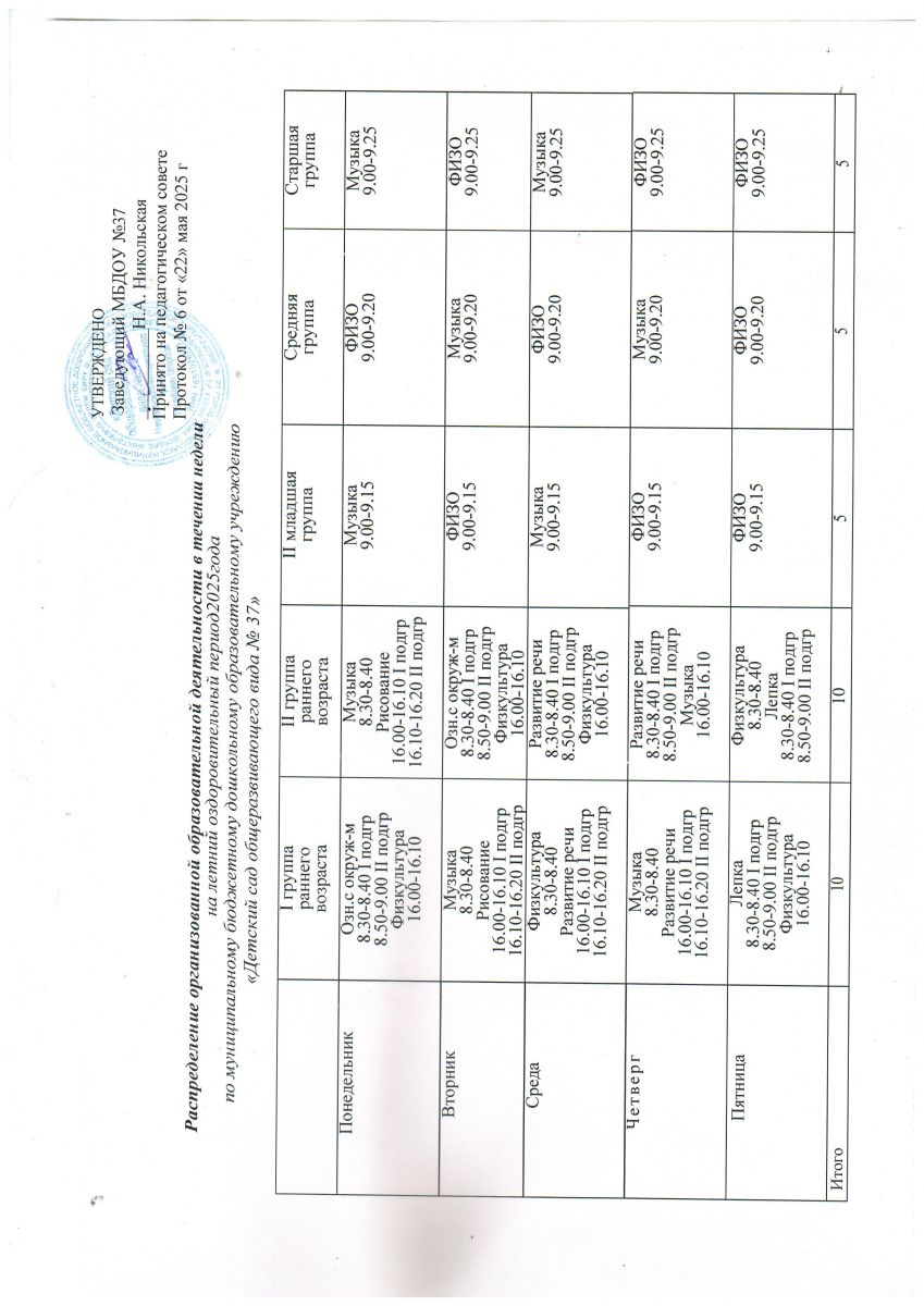 - Расписание образовательной деятельности на летний оздоровительный период 2024-2025г