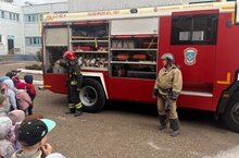 слушали рассказ о том, как важно соблюдать правила безопасности с огнём. Им на наглядном примере показали, как правильно пользоваться огнетушителем.