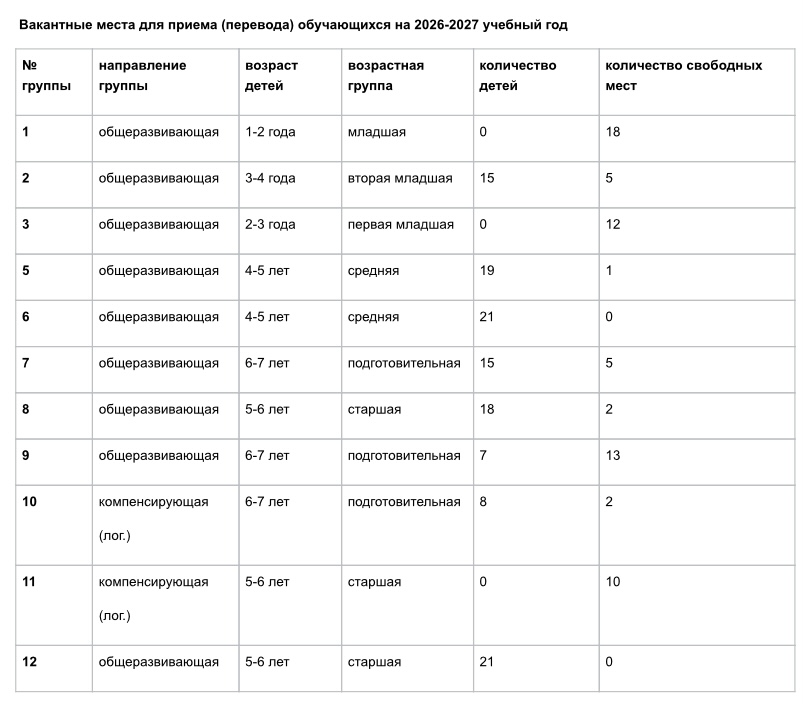 Ежегодно комплектование дошкольных образовательных учреждений Нижнекамского муниципального района осуществляется на основании Административного регламента оказания муниципальной услуги "Постановка на учет и зачисление детей в дошкольные образовательные учреждения". (Постановление исполнительного комитета Нижнекамского муниципального района РТ № 124 от 13.02.2023 года). Зачисление ребенка в детский сад осуществляется только в порядке очереди. Справки по телефону: +7(8555)-33-60-02. Ниже приведены сведения о количестве мест в разных возрастных группах на 2026-2027 учебный год.