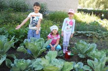 Дружно ухаживаем за плодово-ягодными культурами на огороде детского сада.