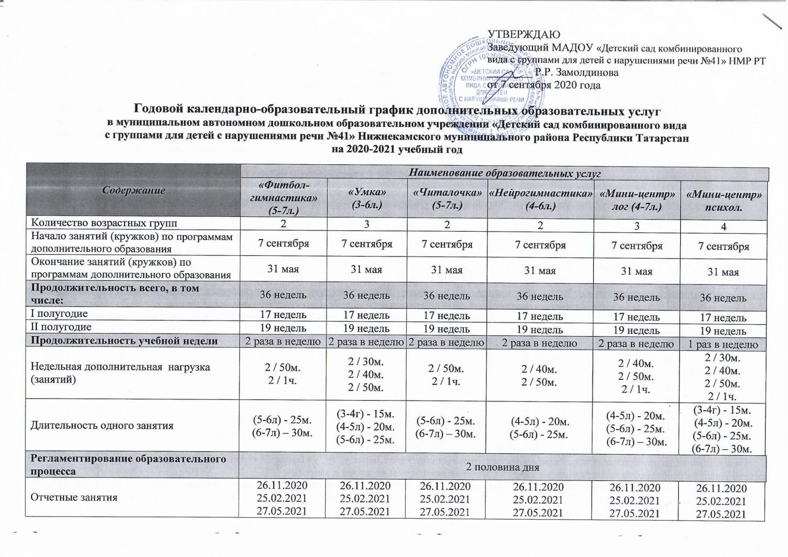 Годовой календарно- образовательный график дополнительных образовательных программ, учебный план